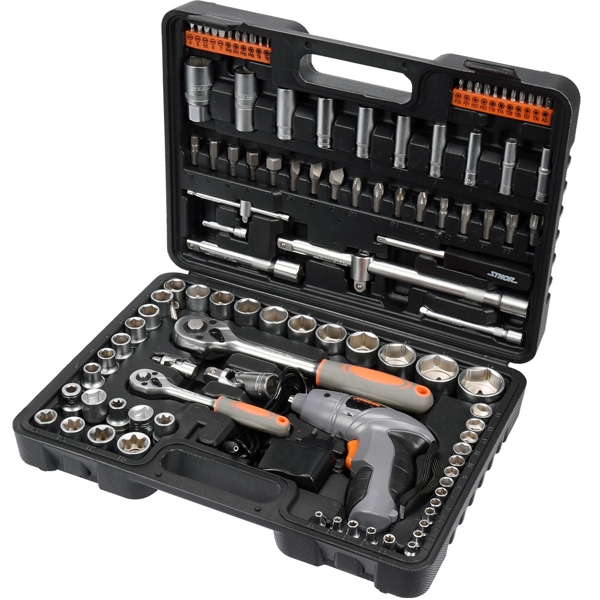 Un set de instrumente de 109 piese care a fost dezvoltat pentru entuziastii exigenti din domeniul DIY. Tubularele echipate cu sistem AS-Drive, crescand cuplul maxim cu 25%, oferind o protectie completa a marginilor piulitelor. Clichetul este prevazut cu un maner ergonomic si 45 de dinti. Trusa include de asemenea o surubelnita cu acumulator de 3.6 V.