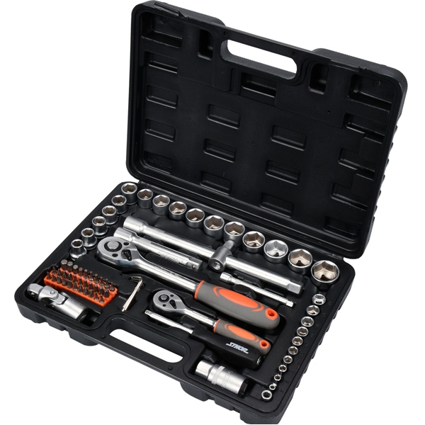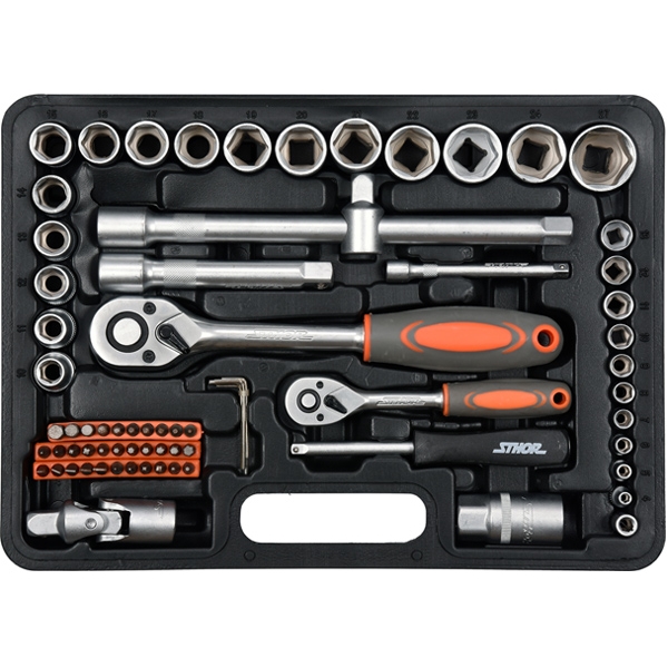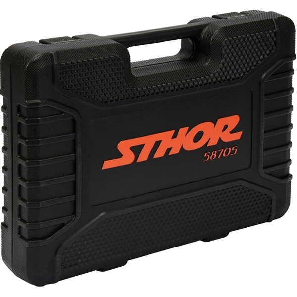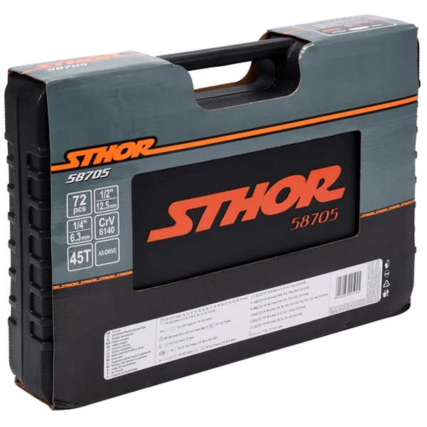 Trusa Sthor este compusa din 72 piese plasate intr-o cutie de plastic. Instrumentele au fost fabricate din materiale care le asigura fiabilitatea. Setul include o gama completa de tubulare 1/4 inch, 1/2 inch, prelungitoare, cuple cardanice si multe alte elemente. Aceasta configuratie face trusa sa fie potrivita pentru lucrari de asamblare minore, pentru reparatii mecanice si multe alte lucrari in gospodarie sau atelier.