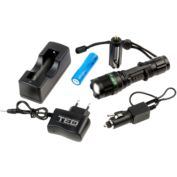Include 1 acumulator 18650 Li-Ion, incarcator de retea si auto.