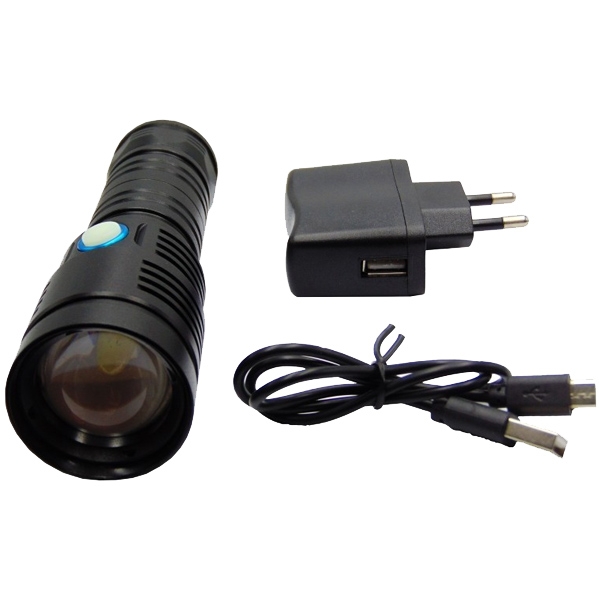| Informatii suplimentare | Putere: 10 W Flux luminos: 1200 lm Tip LED: P50 Autonomie: 2-6 ore Raza de actiune: 500 m Material: aliaj de aluminiu Dimensiuni: 140x42x36 mm Functioneaza cu 1 acumulator 18650 |