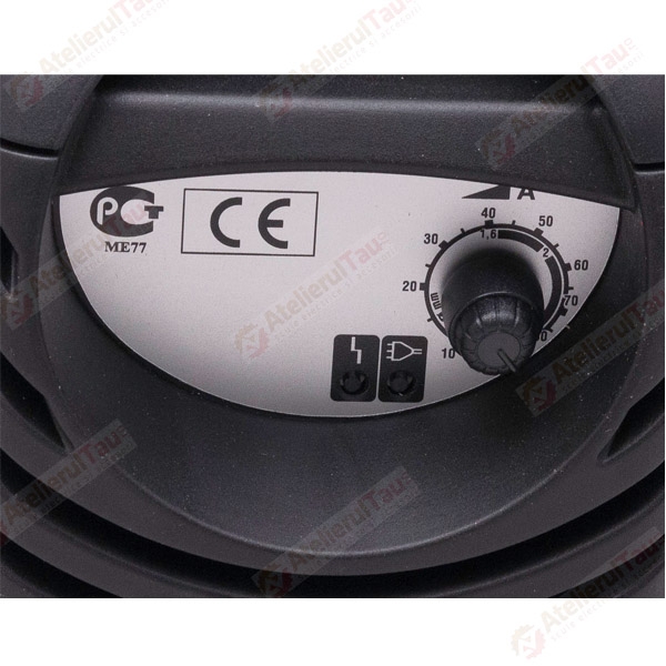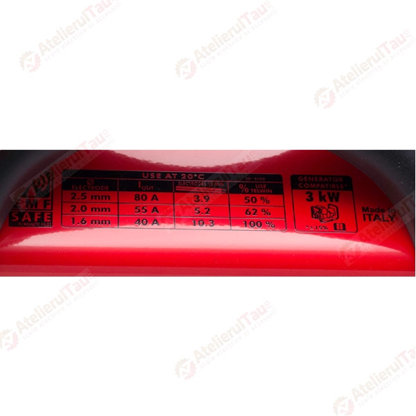 Dispune de un reglaj continuu al curentului de sudura si de o protectie termica cu termostat.