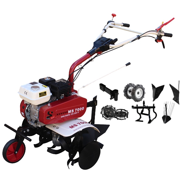 Media Line - MS 7000 TOP - Motosapa, Media Line, -, 7 CP, 800 mm, 3 viteze (2 inainte + 1 inapoi), benzina fara plumb, roti pneumatice, suport accesorii, plug bilonat, roti metalice, plug simplu, prasitoare, extractor cartofi