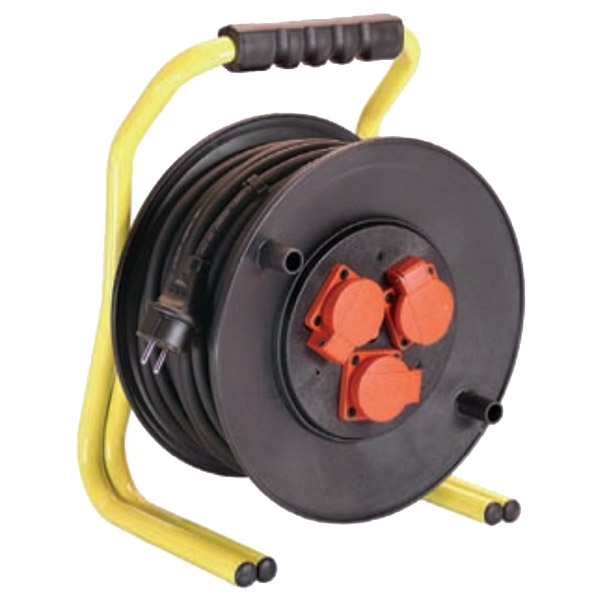 Tambur profesional, suport masiv, antisoc, din structura tubulara dubla, de mare stabilitate, maner cu forma ergonomica, frana de blocare cu maner mare in stea, corpul derulatorului din