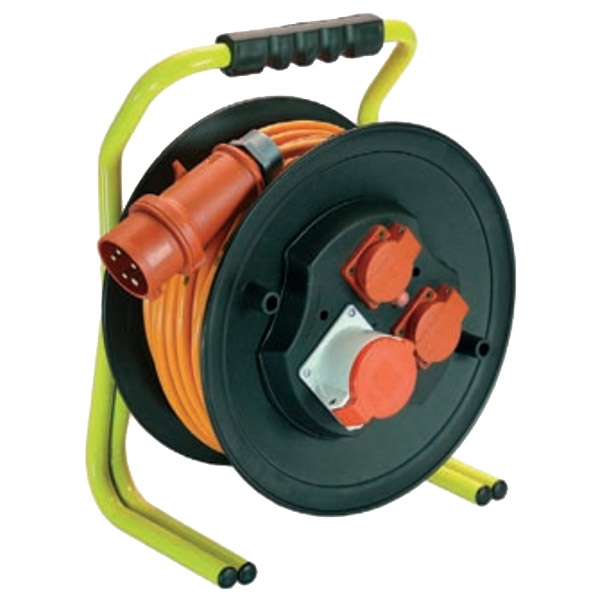 Tambur de cablu profesional 400V CEE din material plastic special, suport masiv, antisoc, din structura