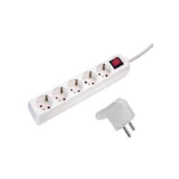 Priza multipla 5x. Protectie la contactul copiilor, cu comutator si bec de control. Prizele sunt decalate ca pozitie la 45 grade.