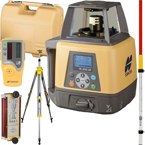 Laserul rotativ Topcon RL-200 2S este unul dintre cele mai avansate aparate de acest gen oferite de TPI, avand o precizie foarte mare. Acest aparat are o impresionanta raza de actiune a sernzorului, la 1100 m diametru, asta insemnand ca poate lucra fara probleme intr-un perimetru de 100 ha fara a fi nevoie de a-i schimba pozitia. In plus, acest model este capabil de a determina panta in ambele axe (x si y) la peste +/- 25 %, iar valoarea poate fi introdusa electronic, aparatul venind cu o interfata LCD generoasa. Acesti parametrii de operare asigura faptul ca instrumentul este destinat in primul rand pentru sarcini asociate cu lucrarile de constructii avansate si constructii rutiere, care determina panta si cota, inclusiv controlul utilajelor de constructii (motorgrader , dozer , excavator ,etc).