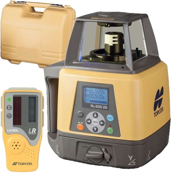 Laserul rotativ Topcon RL-200 2S este unul dintre cele mai avansate aparate de acest gen oferite de TPI, avand o precizie foarte mare. Acest aparat are o impresionanta raza de actiune a sernzorului, la 1100 m diametru, asta insemnand ca poate lucra fara probleme intr-un perimetru de 100 ha fara a fi nevoie de a-i schimba pozitia. In plus, acest model este capabil de a determina panta in ambele axe (x si y) la peste +/- 25 %, iar valoarea poate fi introdusa electronic, aparatul venind cu o interfata LCD generoasa. Acesti parametrii de operare asigura faptul ca instrumentul este destinat in primul rand pentru sarcini asociate cu lucrarile de constructii avansate si constructii rutiere, care determina panta si cota, inclusiv controlul utilajelor de constructii (motorgrader , dozer , excavator ,etc).
