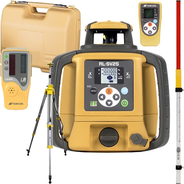 Topcon ofera o gama larga de nivele laser rotative , care includ lasere cu fascicul laser rosu si verde. Modelul RL-SV2S este un laser multi-nivelare cu o raza laser vizibila rosie. Echipamentul este capabil sa lucreze atat pe orizontala cat si pe verticala, cu mare precizie -2.4 mm/50 m, iar raza de actiune este de 800 m (diametru). Setarile se fac prin intermediul panoului de control cu display LCD cu iluminare sau de la telecomanda (de asemenea, cu ecran LCD).