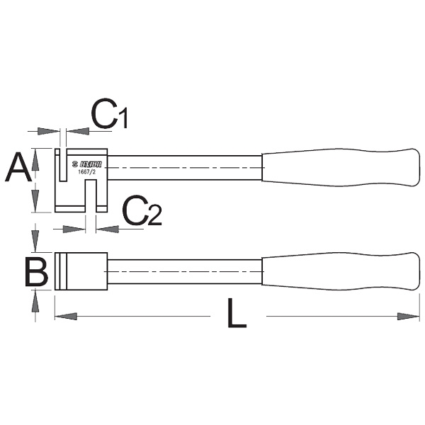 Informatii suplimentare | Material: otel de scule calit si revenit L: 243 mm A: 42 mm B: 25 mm C1: 4.5 mm C2: 7 mm Greutate: 0.542 kg |