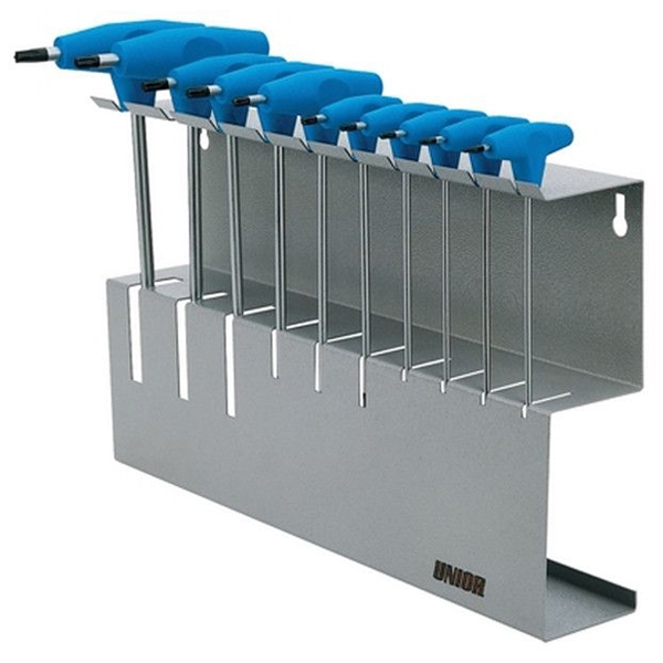 Setul de surubelnite profil TORX cu maner in T pe suport metalic contine: