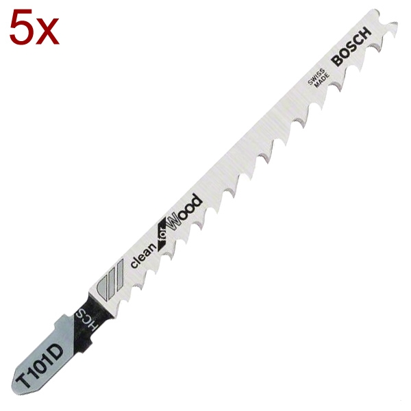 Bosch - T 101 D - Panza fierastrau pendular, tija cu un prag de prindere (T), 100 mm, lemn, taiere dreapta, fina, 5 bucati