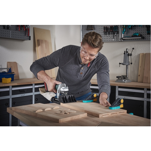Datorita reglarii flexibile a inaltimii si unghiului puteti freza curat imbinari in colt, in T, de suprafata sau in unghi.