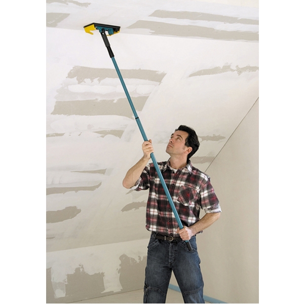 Cu manerul telescopic pentru slefuitorul manual wolfcraft slefuiti confortabil tavanele, peretii mansardei si peretii realizati din gips-carton.