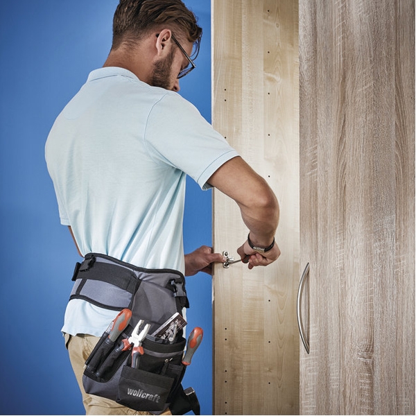 Se poate fixa pe orice curea sau pe centura pentru bazin a sistemului de centura portanta wolfcraft.
