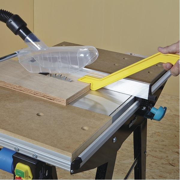 Utilizabil ca masa de ferastrau circular, masa de fierastraului mecanic, masa de freza impreuna cu opritorul frezei, nr. 6901000 si statia de lucru.