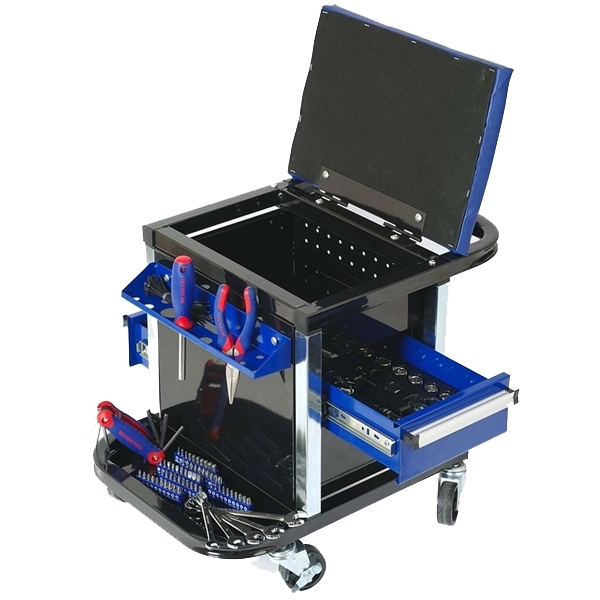 1 x scaun mobil cu 4 roti mobile ce are in dotare: 2 sertare, compartiment pentru scule, taburet, suport scule