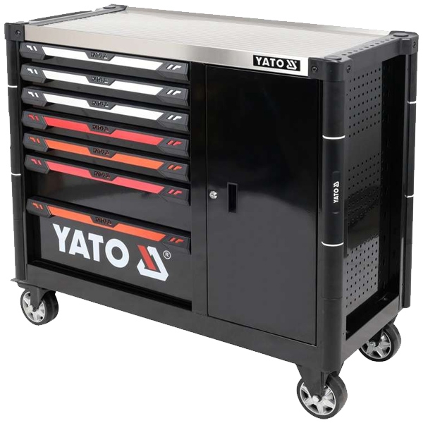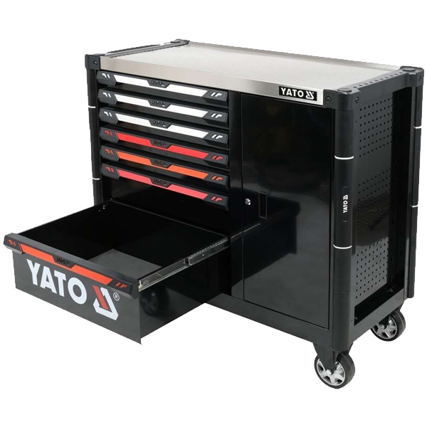 Dulapul de scule Yato YT-09033 are un design unic, cu un mecanism care blocheaza posibilitatea de a deschide mai mult de un sertar in acelasi timp.