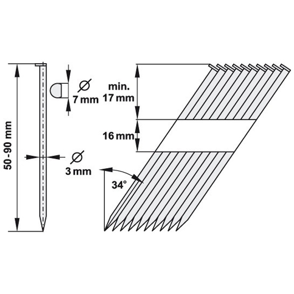 Cuiele sunt impachetate cu banda de hartie, la un unghi de 34 grade.