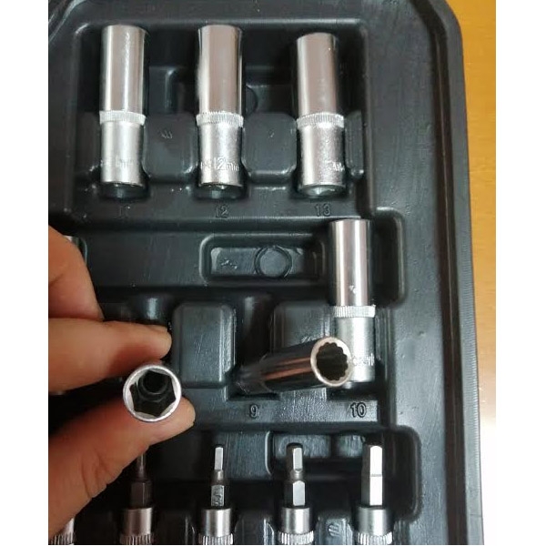 Cheia de 8 mm are profil cu 6 laturi, celelalte chei au profil cu 12 laturi.