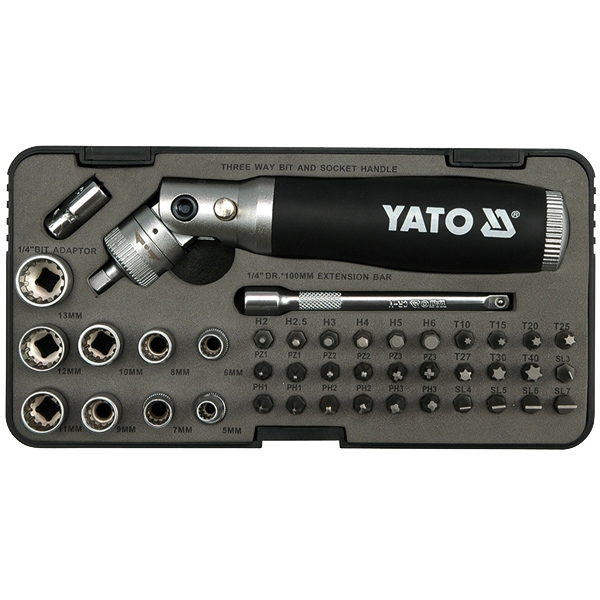 Set surubelnita cu biti din otel crom-vanadiu de inalta calitate CrV50BV30. Bitii TORX, HEX, POZIDRIV, cruce si plate au fost fabricati din otel AISI S2.