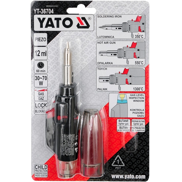 Pistol 3 in 1 cu aprindere PIEZO, functie de lipire (350 grade Celsius), pistol cu aer cald (550 grade Celsius) si arzator (1300 grade Celsius).