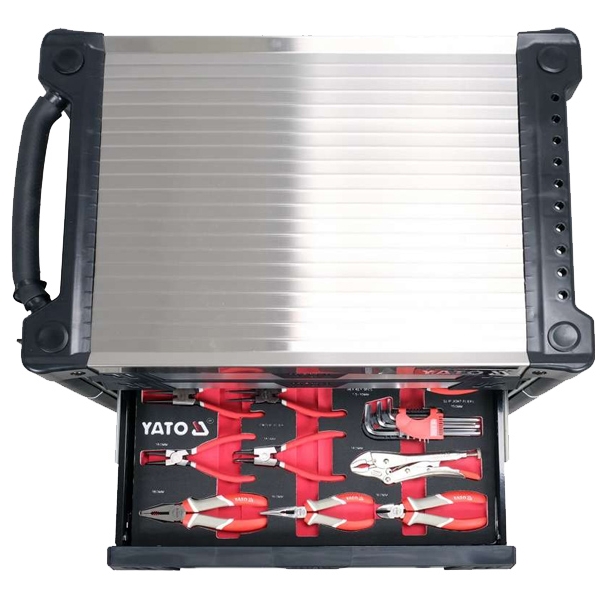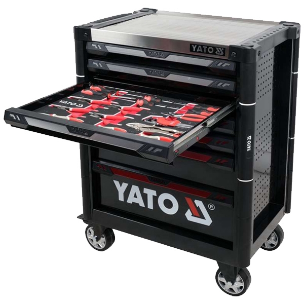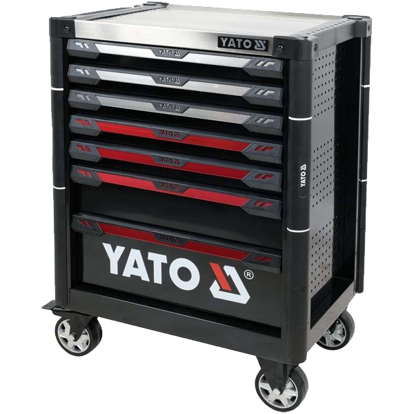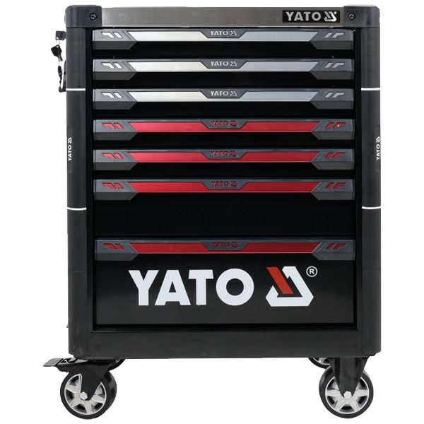 Noul dulap de service cu scule Yato YT-55308 are un design unic cu un mecanism care blocheaza posibilitatea deschiderii a mai multor sertare in acelasi timp.