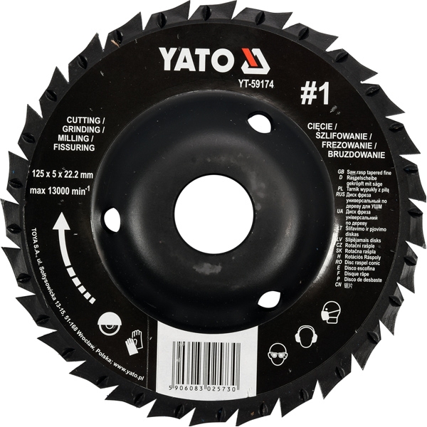 | Informatii suplimentare | Diametru exterior: 125 mm Diametru interior: 22.2 mm Grosime de taiere: 5 mm Granulatie: #1 Viteza maxima de rotatie: 13000 rpm |