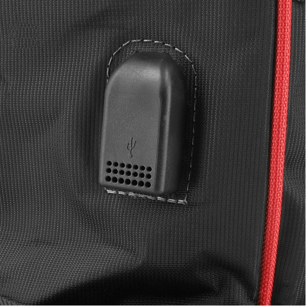 Rucsacul are un port USB incorporat pe partea laterala, care permite incarcarea in siguranta a unui power bank sau a unui smartphone. Este ideal pentru uzul zilnic, la locul de munca sau in calatorii.