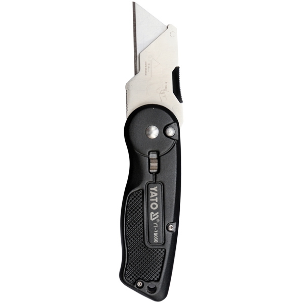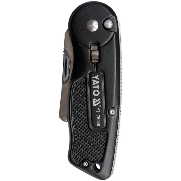 Cutter pliabil cu lama trapezoidala inlocuibila 61x33x0.5 mm.