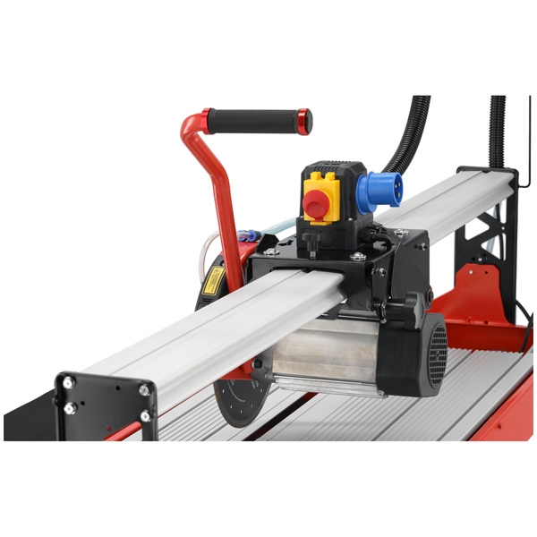 Masina de taiat cu laser si ghidaj destinata taierei materialelor ceramice cu discuri diamantate pe baza de apa - plăci, gresie, teracotă. Masa solida cu o suprafata de lucru generoasa si un blat suplimentar care permite taierea placilor de mari dimensiuni cu o dimensiune maxima de 1200 x 600 mm.