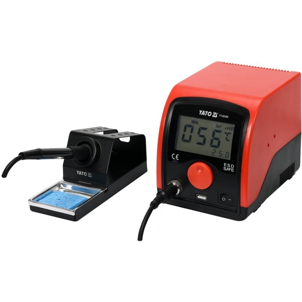 Statia de lipit YT-82456 a fost realizata in conformitate cu tehnologia ESD-safe, care garanteaza ca nu va exista nici o sarcina electrostatica in exces pe carcasa. Datorita acestui fapt, limitam riscul de a deteriora, de exemplu, circuitele SMD sensibile. Se incalzeste pana la o temperatura de functionare de 350 grade C in aproximativ 25 de secunde.