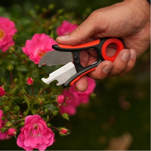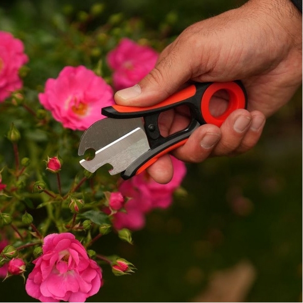 Orificiul special din lama permite indepartarea usoara a ghimilor de pe taieturile de trandafiri, facandu-le indispensabile in lucrarile florale.