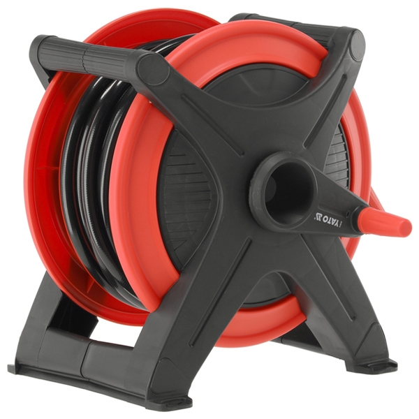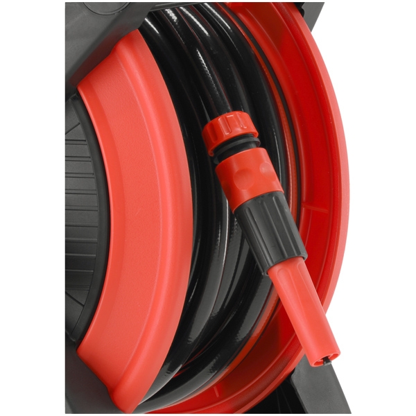 Un suport confortabil pentru furtun de gradina de 30 de metri, cu un set complet de conectori.